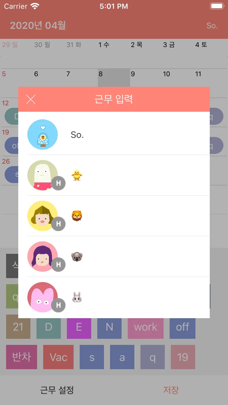 "햄스터"는 가상의 마이듀티 친구 역할을 해주며 자기만의 듀티표도 가지고 있는 친구예요.