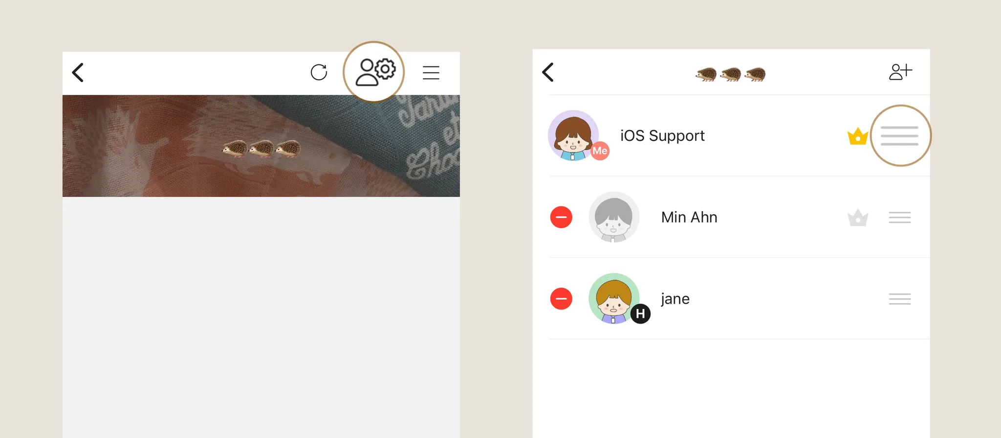 멤버 우측의 세 줄 아이콘을 꾹- 길게 눌러서 멤버를 원하는 순서에 놓아주세요.