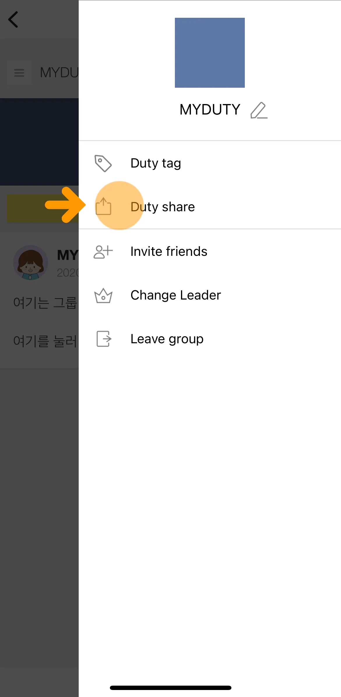 “그룹 메뉴” 화면에서 “근무 공유” 버튼을 터치하실 때마다 근무 공유 상태가 변경됩니다.
