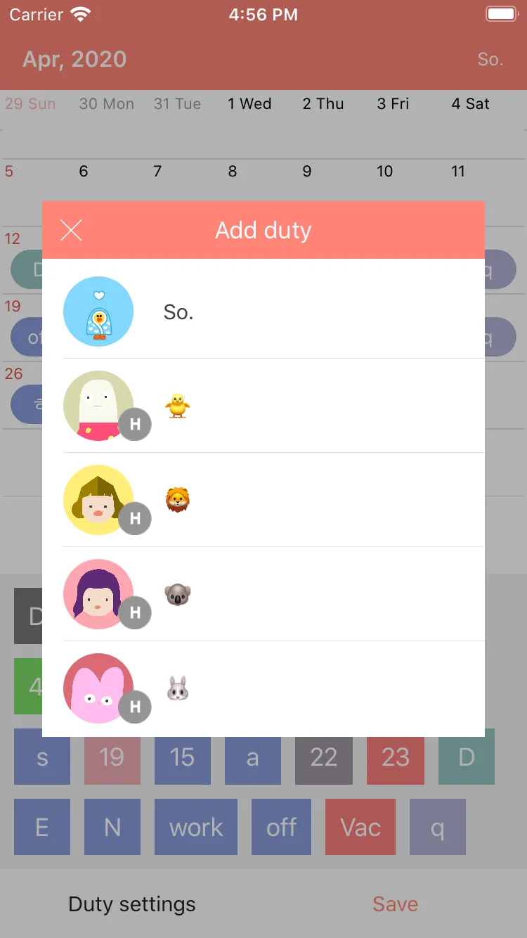 In MYDUTY, a “Hamster” is a virtual friend who steps in when real friends aren’t using the app. Each Hamster has its own duty schedule, helping you manage duties within your Group.